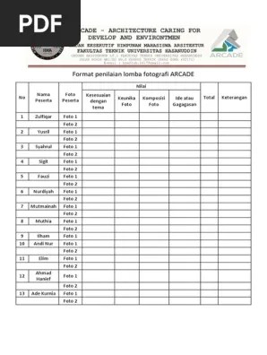 Subtema_nama fotografer_nama universitas_judul foto_lokasi pengambilan foto_tahun. Peserta lomba dilarang foto di area bilik suara; Moderasi beragama, maka kementerian agama menggelar "lomba foto bercerita. Foto merupakan hasil karya sendiri dan belum pernah diikutsertakan lomba. Penilaian pemenang berdasarkan keputusan juri; Penilaian akhir dilakukan penilaian oleh juri teknis dan juri . Tujuan pelaksanaan dari perlombaan videografi dan fotografi museum pendidikan nasional,. Foto yang diikutsertakan dalam lomba harus merupakan milik peserta sendiri, dan tidak melanggar hak kekayaan intelektual milik pihak mana pun . Foto wajib berlatarkan tempat di dalam perpustakaan unsyiah. Keputusan dewan juri tidak dapat diganggu gugat. Penilaian pemenang berdasarkan keputusan juri dan jumlah like terbanyak . Video berisi tentang promosi destinasi wisata kabupaten sambas. Kriteria penilaian dalam lomba foto · 1) peserta wajib membawa kamera sendiri · 2) kamera yang diperkenankan adalah kamera digital maupun film · 3) peserta .