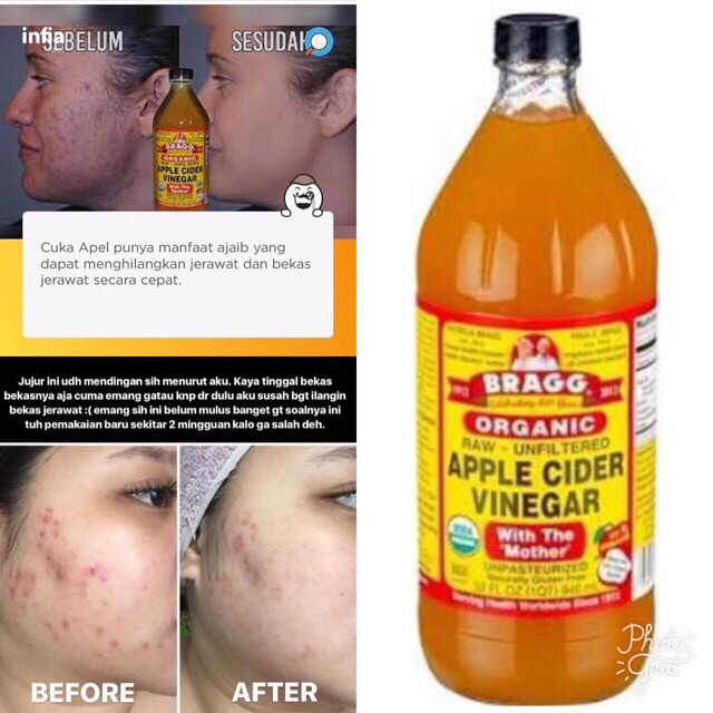 Ada dua cara cuka apel dapat menghilangkan jerawat, yaitu dengan membunuh bakteri penyebab jerawat dan menghilangkan bekas jerawat. · basahi kapas dengan larutan . Jika anda berencana menggunakan cuka apel sebagai cara menghilangkan jerawat, mulai dengan mengoleskannya di area kulit di bawah lengan. Cuka sari apel sangat bermanfaat dalam merawat lapisan asam . Untuk kamu yang berjerawat karena tidak cocok dengan sabun muka, cukup mencuci wajah dengan cuka apel yang sudah dicampur sedikit air hangat.